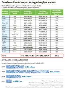 A dívida do governo estadual com as organizações sociais (OSs) que administram 17 unidades de saúde em Goiás é de