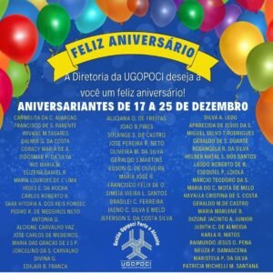 UGOPOCI parabeniza os aniversariantes entre os dias 17 a 25 de dezembro