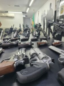A Polícia Civil de Goiás, durante a ação fiscalizatória da Delegacia do Consumidor em lojas de armamentos em Goiânia, apreendeu,