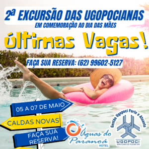 ÚLTIMAS VAGAS PARA A 2ª EXCURSÃO DAS UGOPOCIANAS