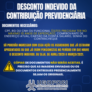 O Jurídico informa que está recebendo a documentação para a Ação de Desconto Indevido da Contribuição Previdenciária até o final de junho