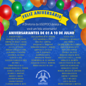 A UGOPOCI parabeniza todos os aniversariantes dos dias 01 a 10 de julho. Muita paz, alegria, saúde e prosperidade!