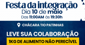 🎉 Festa da Integração! 🎶 📍 Chácara Tio Patinhas 🗓️ Dia 10 de maio 🕚 Das 11h às 19h30 Traga