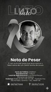 É com imenso pesar que comunicamos o falecimento do Sr. Luiz Carlos Santos de Sousa. Ele era amigo dos diretores