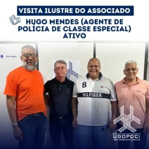 A Nova Diretoria Executiva da Ugopoci, registra e agradece com satisfação a visita do ilustre amigo e associado ugopociano, agente de polícia de classe especial, ativo no 20º DP, o HUGO MENDES, nesta sexta-feira, 11 de abril, na sede da entidade.