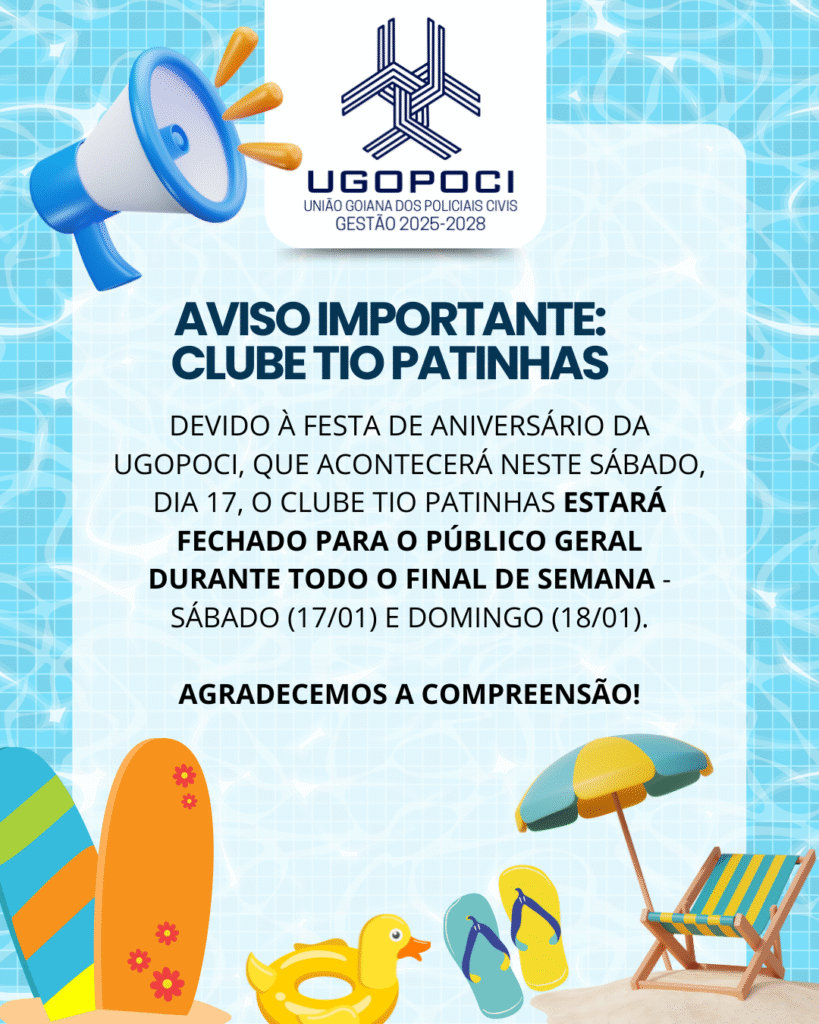 Devido à Festa de Aniversário da UGOPOCI, que acontecerá neste sábado, dia 17, o Clube Tio Patinhas estará FECHADO para o Público Geral durante todo o final de semana – sábado (17/01) e domingo (18/01).
