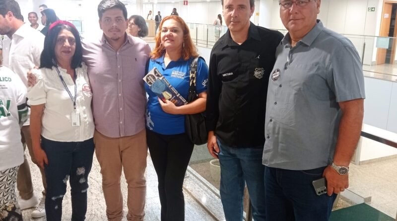Estiveram nesta manhã (18) no plenário 2 da Assembleia Legislativa a presidente da UGOPOCI, Nelma Félix; o vice-presidente, Reginaldo Melo; o diretor administrativo, Geraldo Rodrigues; o presidente do SINPOL, Renato Rick; seu vice-presidente, Charles Pessoa e demais representantes classistas dos servidores públicos de Goiás.