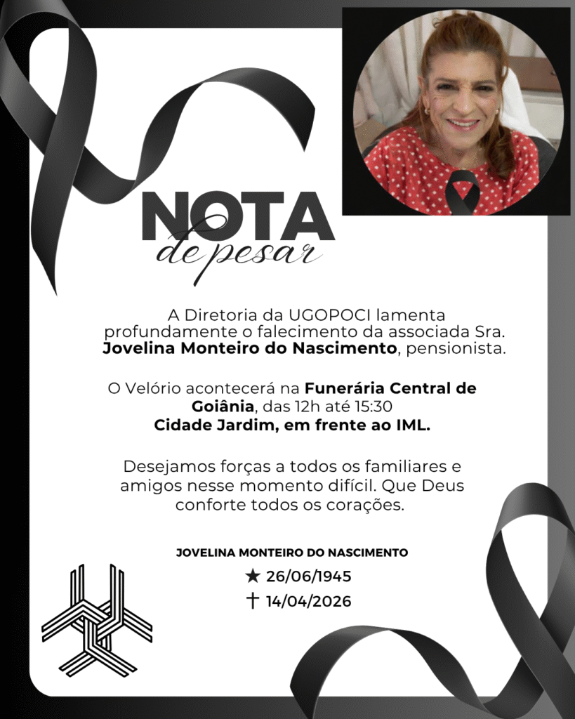 Diretoria da UGOPOCI lamenta o falecimento da associada Jovelina Monteiro do Nascimento