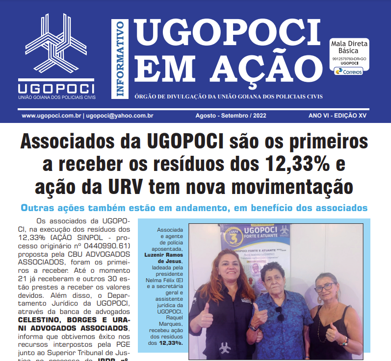 Há quatro meses no exercício de suas funções, a Diretoria da gestão UGOPOCI FORTE E ATUANTE – 2022/2025 tem a honra de publicar para seus associados e associadas esta edição do Informativo UGOPOCI em FOCO, destinado a levar informações sobre assuntos administrativos, jurídicos e sociais de interesse dos filiados.
