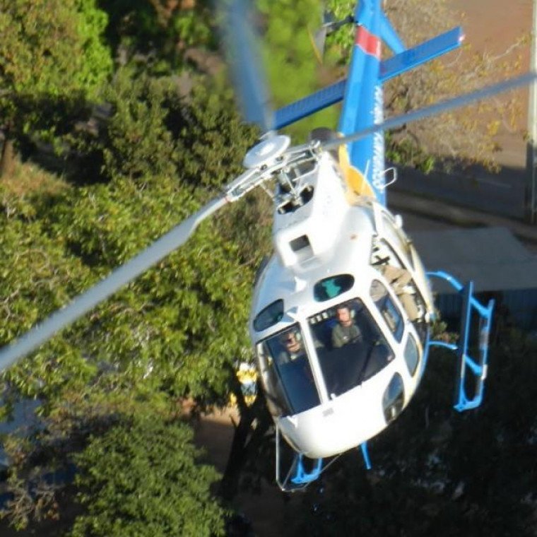 O helicóptero da segurança pública também está no local prestando apoio. O grupo de fugitivos continua cercado e a polícia negocia a rendição.