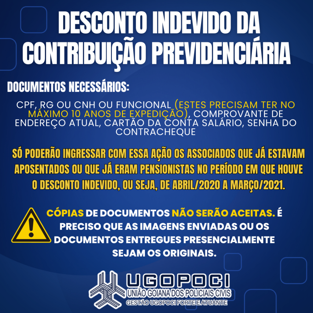 Só poderão ingressar com essa ação os associados que já estavam aposentados ou que já eram pensionistas no período em que houve o desconto indevido, ou seja, de abril/2020 a março/2021. Aqueles que não puderem vir assinar a documentação pessoalmente, solicite por WhatsApp ou por e-mail: (62) 99639-3118 / juridico@olivedrab-peafowl-174349.hostingersite.com