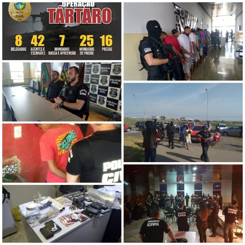 Um total de 16 pessoas foram presas preventivamente durante uma ação integrada entre o Grupo de Investigação de Homicídios (GIH), o Grupo Especial de Repressão a Narcóticos (Genarc) e o Grupo Especial de Repressão a Crimes Contra o Patrimônio (Gepatri) da 3ª Delegacia Regional de Polícia (DRP), com sede em Anápolis, na manhã desta sexta-feira (28), com a deflagração da Operação Tártaro, durante a qual ainda foram cumpridos sete mandados de busca e apreensão.