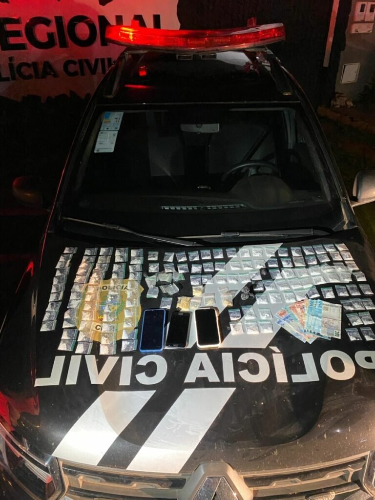 No local, as equipes realizaram uma revista e localizaram aproximadamente 150 porções de drogas prontas para a comercialização. As investigações apontam que o crime era praticado nas proximidades de um colégio estadual, durante o horário de saída dos estudantes, expondo os jovens a uma situação de risco.
