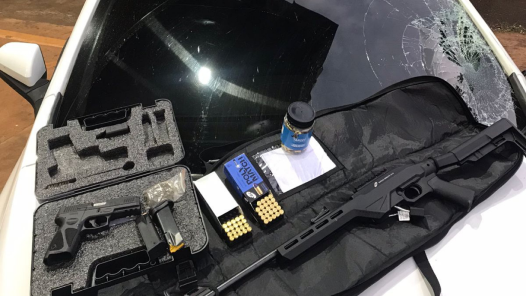 De posse da identidade do investigado, as diligências policiais desaguaram minutos depois no encontro do veículo que apresentava sinais evidentes de acidente de trânsito, encontrado no domicílio do investigado, mesmo local em que foram apreendidas armas de fogo e munições.