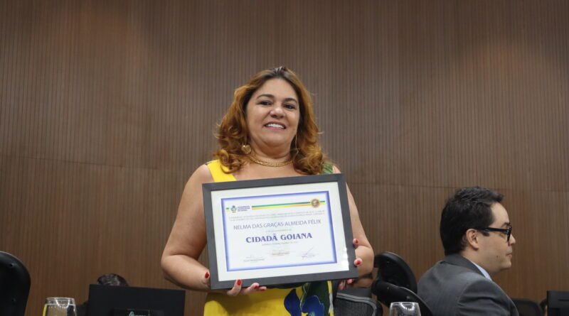 Na manhã desta quarta-feira (29), a presidente da Ugopoci, Nelma Félix, recebeu título de Cidadã Goiana durante sessão solene da Assembleia Legislativa de Goiás (Alego), concedido pelo deputado Delegado Eduardo Prado, pela contribuição no desenvolvimento do Estado.