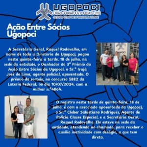 A Diretoria da Ugopoci trabalha para maior segurança e bem estar dos seus associados (as)! Desta forma a Ugopoci acaba