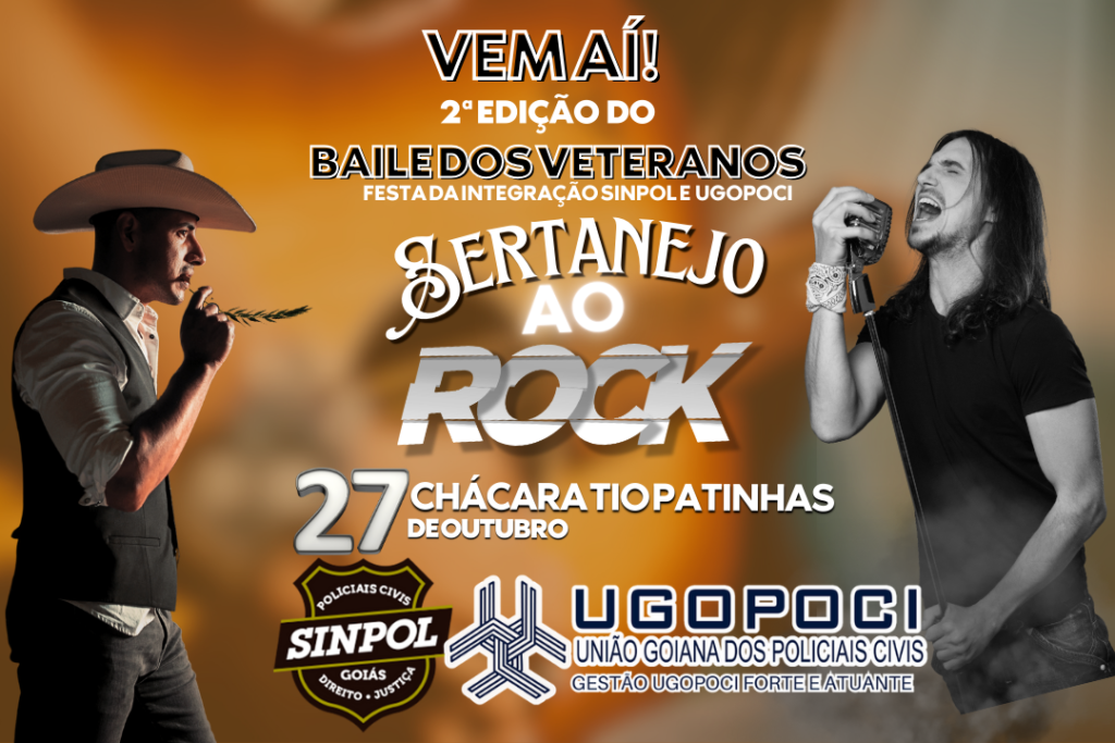 SINPOL e UGOPOCI apresentam a Festa da Integração: 2ª edição. O Baile dos Veteranos está de volta com o tema “Do Sertanejo ao Rock n Roll”. 🤠🎸🤘