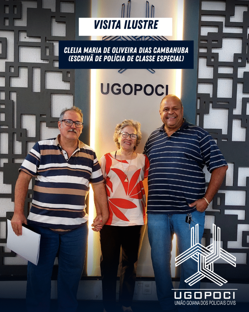 VISITA ILUSTRE | Na manhã desta segunda-feira, 25, a diretoria da Ugopoci recebeu a visita ilustre da associada Clélia Maria de Oliveira Dias Cambahuba, escrivã de polícia de classe especial aposentada, acompanhada de seu esposo Márcio Cambahuba, delegado do Mato Grosso. Ambos foram recebidos na sede, com muito carinho, pelo diretor administrativo da Ugopoci, Mircinon Júnior. Sejam sempre bem-vindos!