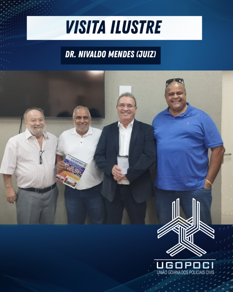VISITA ILUSTRE | Nesta sexta-feira, 03, o Dr. Nivaldo Mendes, juiz de direito da Comarca de Santa Cruz de Goiás, recebeu em seu gabinete os membros da atual gestão da Ugopoci, o diretor administrativo Mircinon Júnior e o auxiliar jurídico João Ázara, junto do associado Darlan Alves Ferreira. O juiz, que atua na Comarca, já atuou também como Policial Civil.