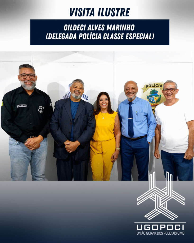 VISITA ILUSTRE | A diretoria da UGOPOCI recebeu na tarde de ontem (02) a visita ilustre da associada Gildeci Alves Marinho, delegada de polícia de classe especial. Ela foi recebida, com muito carinho, pelo presidente José Virgílio, o vice-presidente Ademar de Oliveira, o secretário-geral Antônio Carlos e pelo gestor Geraldo Rodrigues. Seja sempre muito bem-vinda!