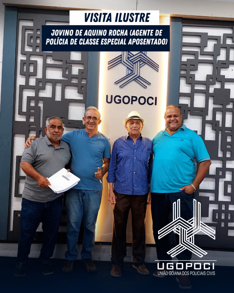 VISITA ILUSTRE | Na manhã desta segunda-feira, 06, a diretoria da Ugopoci recebeu a visita ilustre do associado Jovino de Aquino Rocha (agente de polícia de classe especial aposentado. Ele esteve na sede e foi recebido, com muito carinho, pelo diretor administrativo Mircinon Júnior, o auxiliar jurídico João Ázara, e o gestor Geraldo Rodrigues. Seja sempre muito bem-vindo!