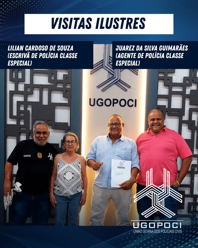 VISITAS ILUSTRES | Na tarde desta quarta-feira, 01, a diretoria da Ugopoci recebeu duas visitas ilustres na sede. O associado Juarez da Silva Guimarães, agente de polícia de classe especial, que esteve no departamento jurídico e obteve sucesso ao tratar assuntos referentes ao processo da URV, e a associada Lilian Cardoso de Souza, escrivã de polícia de classe especial, que veio rever os amigos de longa data. Ambos foram recebidos, com muito carinho, pelo diretor administrativo Mircinon Júnior, e pelo auxiliar jurídico João Ázara. Sejam sempre muito bem-vindos.